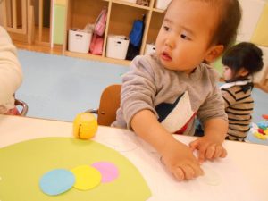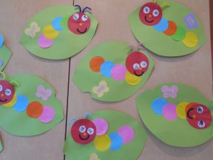 子どもたちに「今日はあおむしさん作るよ