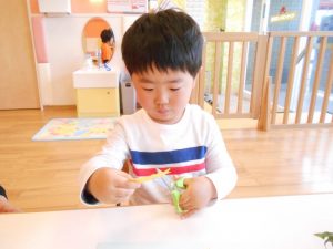 はさみを手に持つと…真剣な表情にかわりとても集中していました♪
