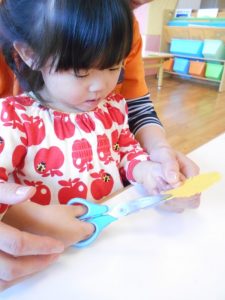 はさみの使い方は、ケガのないよう保育士が丁寧に教えています。