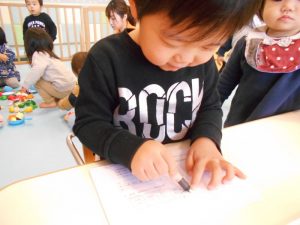 滑るような描き心地がおもしろかったようで、夢中になって楽しんでいました![]()