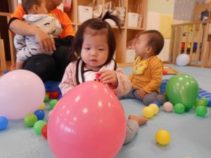 フワフワ転がる風船やボールを「まって~♪」と追いかける子どもたち!