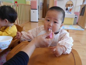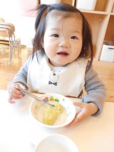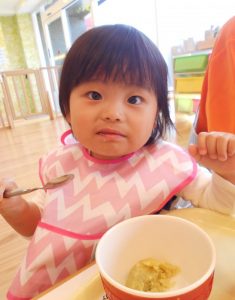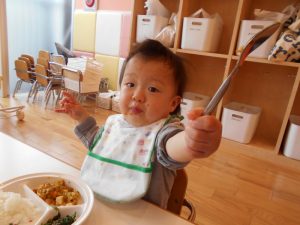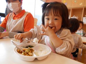 お外でたくさん遊んだ後は…給食の時間です![]()