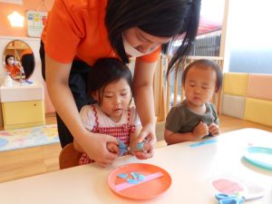 りんごぐみさん? 初めてハサミにチャレンジ!