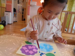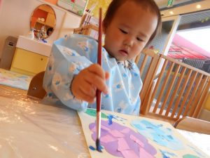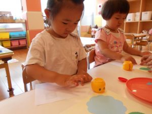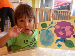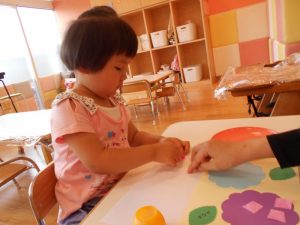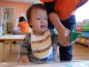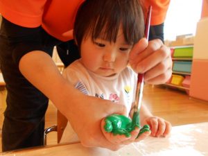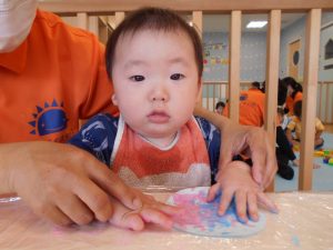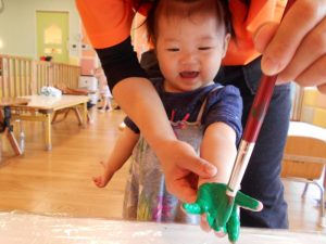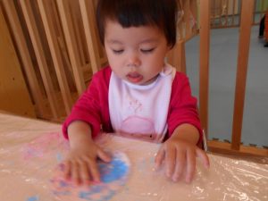 絵の具のヌルっとした感触に驚いたり笑ったり