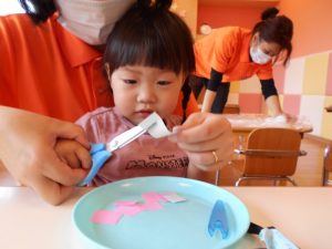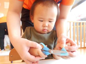 ハサミを手に持ってみると…少し緊張している様子でしたが、ワクワクした気持ちが伝わってきました![]()