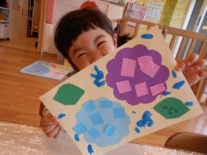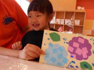 折り紙を チョキチョキ…♪ ハサミで切って〈あじさい〉の花びら作り♪