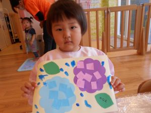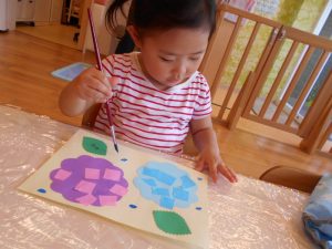 ちゃっぷちゃっぷランランラ~ン♪と「あめふり」を歌いながら… あじさいに雨を降らせました![]()