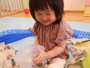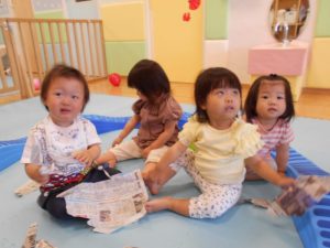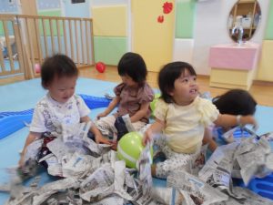「新聞紙シャワーいくよ!3・2・1!!それ~♪」