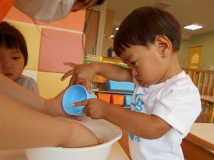 一人ずつ順番に水を入れました♪