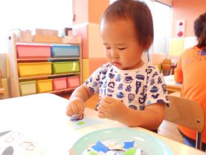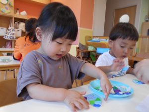 目と口のシールを貼りました!ペタッ♪