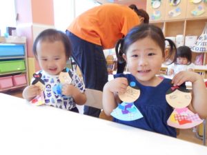 子どもたちに、彦星さまと織姫さまを作ることをお話すると…「やったー!」と喜んでいました♪