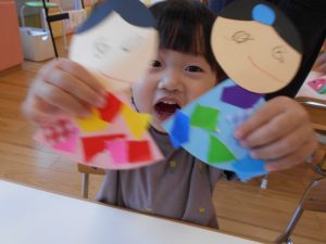 ☆ちぎった折り紙を貼ります!