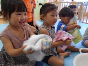 大人のまねっこやちょっとしたお手伝いができるようになってきたりんごぐみさんにはピッタリの遊びとなりました![]()