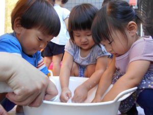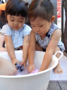 お水で洗う前に練習をしました♪![]()