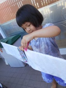 お昼寝の後には、パリッとタオルが乾いていました!!さすが夏ですね(笑)!!