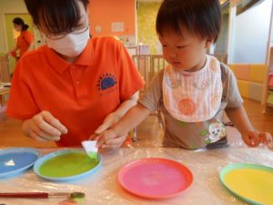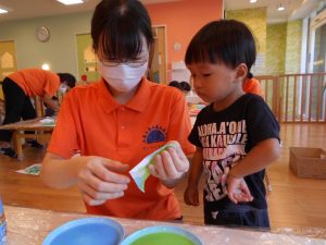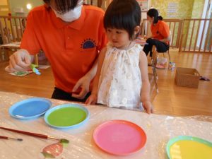 ☆和紙に絵の具をつけます!
