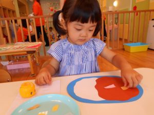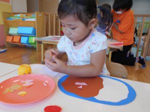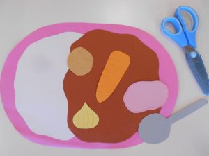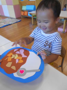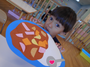 りんご組さんは、絵本を見た後、画用紙でカレーライスを作りました♪