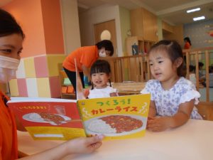 子どもたちは、絵本も見たことでカレーライス作りのイメージが広がり
