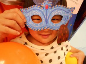 舞踏会のおめんやピエロやかぼちゃのおめん。