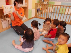 サンライズの子どもたちは「ぞうさん!コップにお鼻入れてる~!」「うさぎさん、ニンジンばっかりだね」と読むたびに新しい発見を見つけているようでした♪