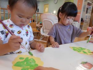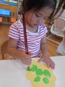 「ぷちぷちおいしいぶどう~♪」と歌を歌いながら筆でマスカットの粒を描きました!