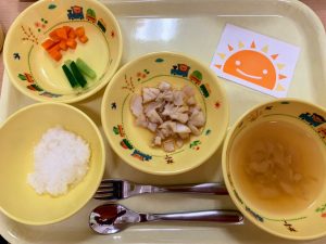 ※子どもたちが席に着くと「美味しそうなにおいがするね~」と言い、給食を楽しみにしてくれていて、こちらも嬉しくなりました♪