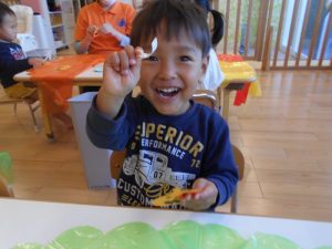 りんごぐみさん、毎日いろんなことにチャレンジして、沢山のことができるようになってきています!!製作の時間では「この色がいい!」「ここに貼りたい!」と自分の意志や気持ちを表現してくれるようになりました