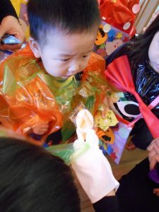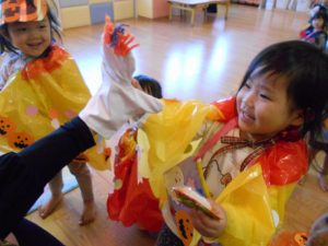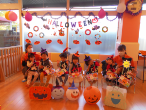 お話が終わり「トリックオアトリート!」の練習もたくさんした子どもたち![]()