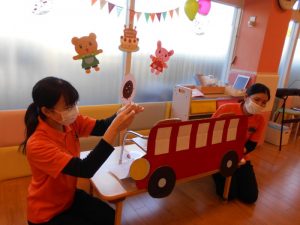 子どもたちが普段から歌っている歌なので「知ってる!!」と目をキラキラさせながら嬉しそうに見たり歌ったり…楽しみました![]()