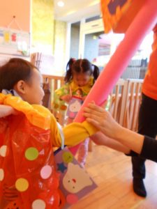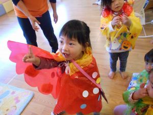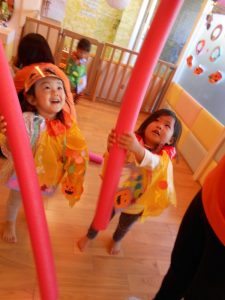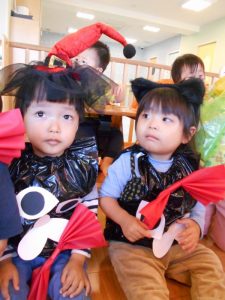 りんご組は魔法使い、いちご組は黒猫、もも組はかぼちゃに変身!!