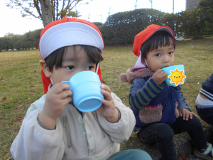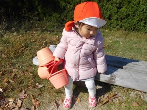 どんぐりを見つけると「あった!!」大喜び!お砂場セットのカップやミニバケツに大切そうに集めていました![]()