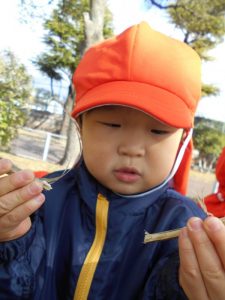 公園にはどんぐりは落ちていなかったので…保育者が公園のあちこちにどんぐりを隠しました!