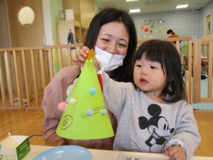 皆で飾りつけをして素敵なツリーが完成しました!!