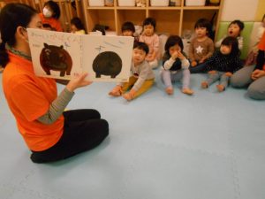 久しぶりに「お~いかばくん(絵本)読むよ~!!」と子どもたちに伝えると…「かばくん?!」「やった~!」ととても喜んでくれました