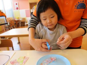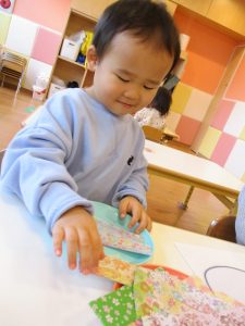 好きな和柄の折り紙を選んで、ハサミで切りました!