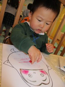 もも組さんが大好きなだるまさんにお絵描きしました♪