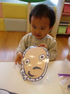 そのあとに、だるまさんの表情パーツを付け替えて遊びました!