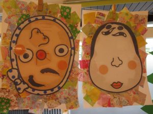 完成したおかめやひょっとこを見て「はっはっは♪」と笑っていました![]()