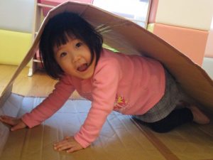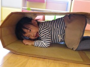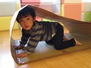 りんご組さんは、段ボールキャタピラーをしました♪