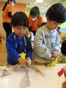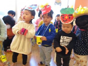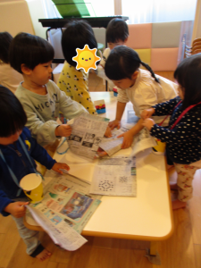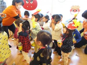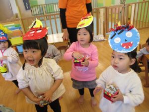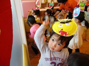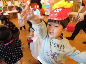 園でも楽しく豆まき(新聞紙)あそびをしました!