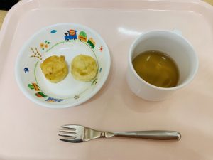 ※「おかわりあるかな~」と言う声がたくさん聞こえてきて、食べる気満々でした!!じゃが芋のマッシュやブロッコリーの塩ゆでは、素材そのものですが、みんなたくさん食べてくれました。