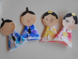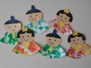 ☆お雛様とお内裏様の着物にスタンプを押して模様を付けました![]()