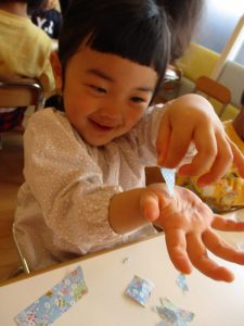 ☆折り紙をちぎります。