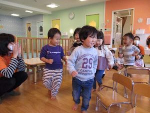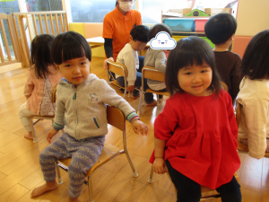 少しづつルールを理解できるようになってきています♪椅子に座れると…ホッとした表情のいちご組さんです![]()
