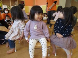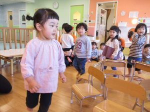 ☆イスの周りを音楽に合わせて歩き、音が止まったら座る。ゲームをしました![]()
