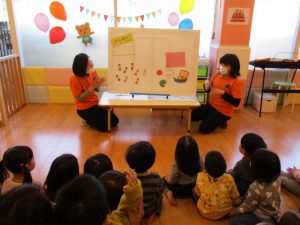子どもたちは「おめでとう!」と手を叩いて喜んだり、バースデイカードを見せると「かわいいね