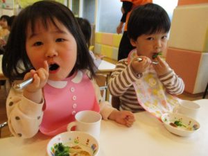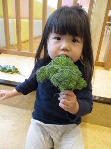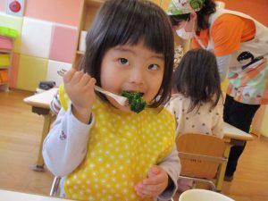 みんなで育てたブロッコリー?!! 「おいしいね~♪」とお話しながら、みんなニコニコ美味しく食べました♪