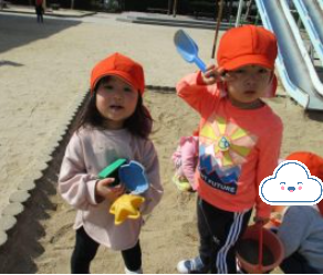お散歩や公園に出かけると「暖かいね~♪」「いい天気!」と子どもたちも春の暖かさを肌で感じています![]()