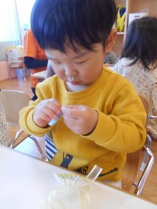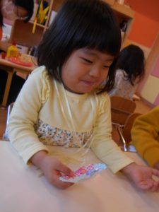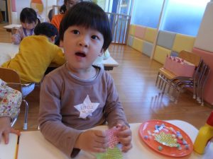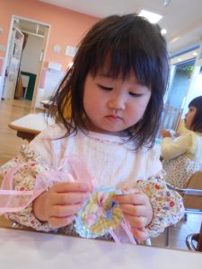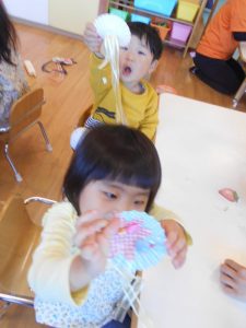 」の気持ちを込めて、もも組さんといちご組さんでペンダントを作りました!