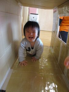 トンネルには窓が付いていて、中に入ると「いないいないばぁ!」あそびが始まります![]()